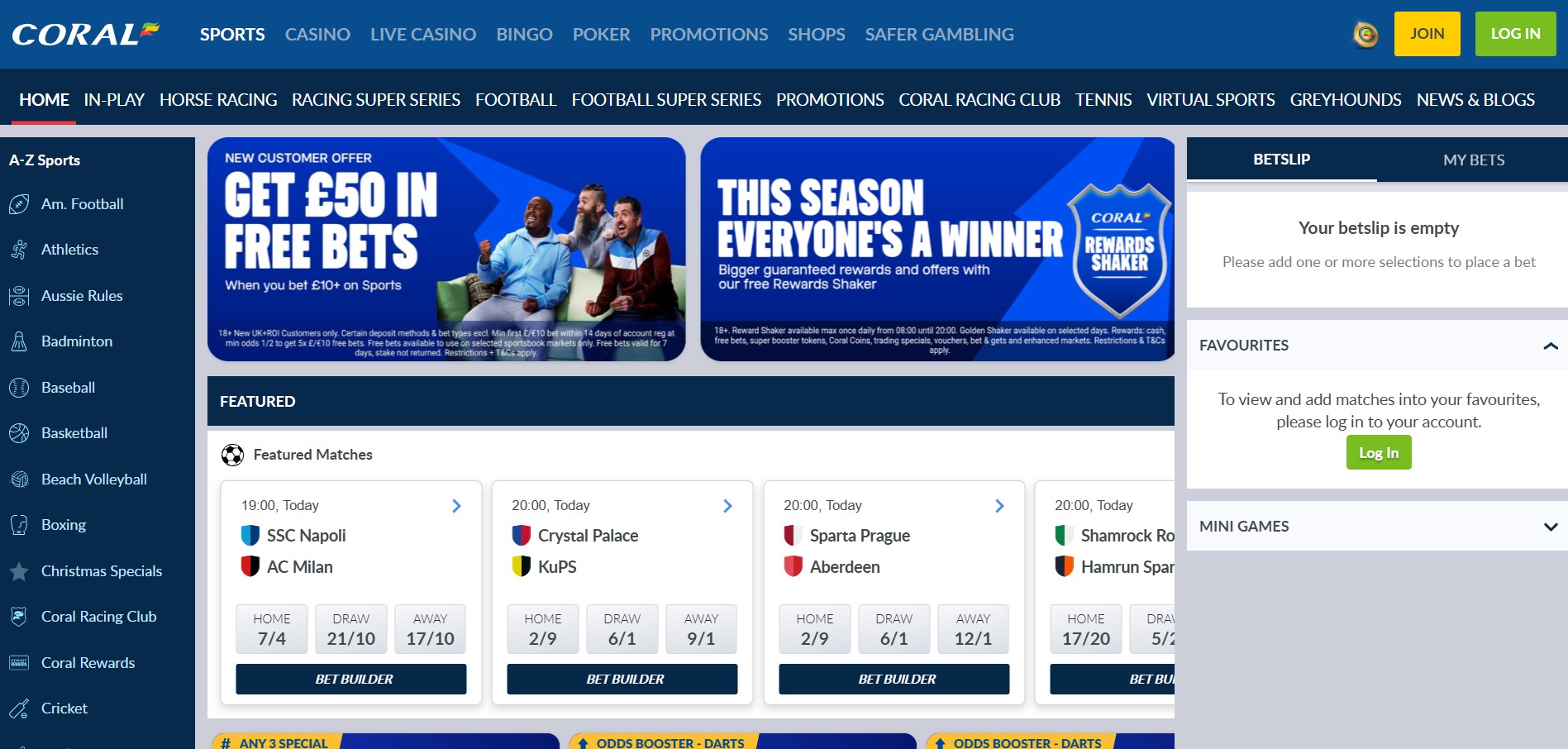 Coral4.8/5Bet £10 Get £50 Free BetsBroad Sports Coverage