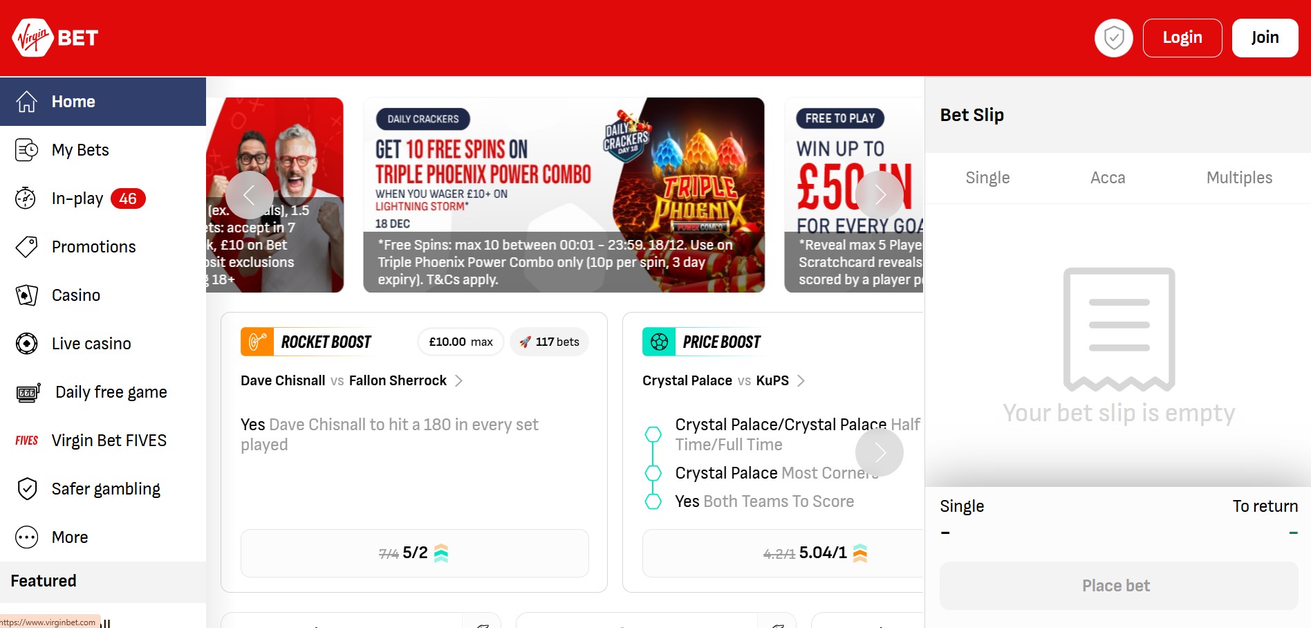 Live betting is seamless and packed with options, and cash-out is available on most popular markets. Horse racing markets are strong too, with frequent odds boosts and special bets for major events, making it easy to keep your betting varied and exciting.